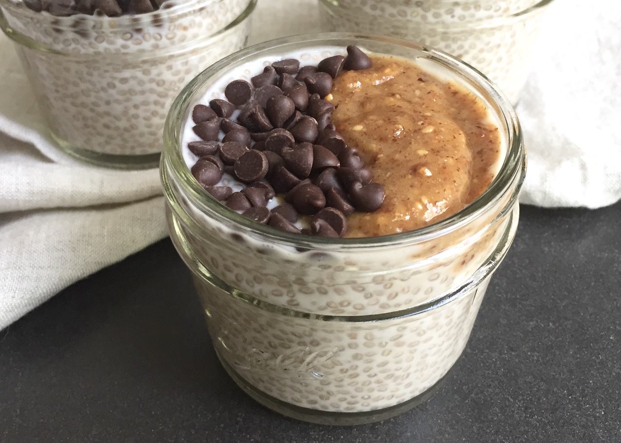 Who doesn’t love dessert for breakfast?! This chocolate chip almond butter chia cup feels like dessert, but has all the great nutrients you need to start your day feeling satisfied & energized. It's super quick to whip up, and I usually prepare some extra jars to have on hand for the next few days. I recommend adding fresh berries on top too!
